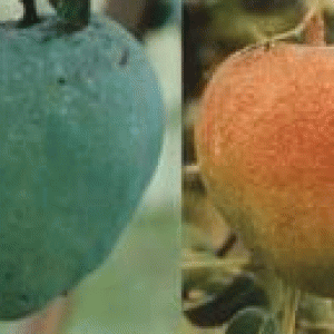 ৪। ফল আকারে বেশ বড় (৬০০ গ্রাম), প্রায় গোলাকার ও লাল আভাসহ সবুজ বর্ণের।